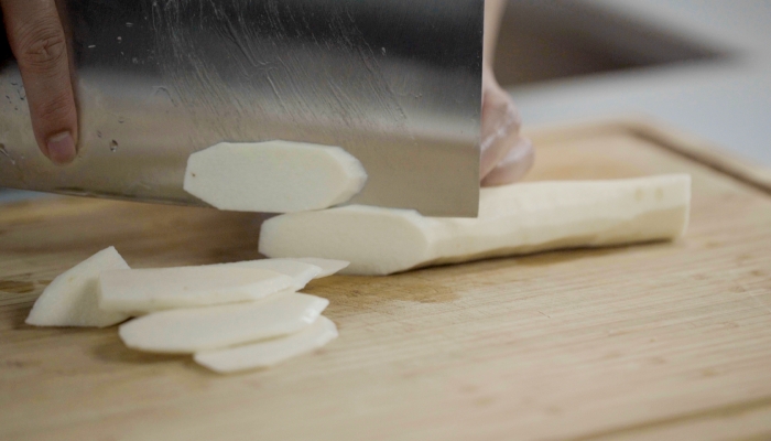 2、醋水浸泡:新鲜的山药含有大量的粘液,其实山药中的粘液可是一种好东西,它是一种多糖蛋白质的混合物,主要成分为黏蛋白和甘露聚糖,对人体有特殊的保健作用。想要去除山药的粘液,可以放入醋:水=1:20比例的醋水中,煮4~5分钟后,捞起泡入凉水里,即可去除粘液。