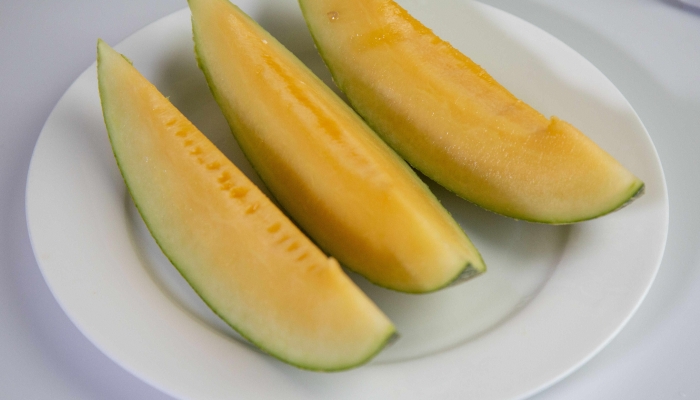 2、看果皮:挑选哈密瓜时还要观察一下表皮部位,建议选择那些表皮上纹路错综复杂,又多又深,摸起来还比较粗糙的哈密瓜,这种哈密瓜的生长环境比较干燥,日晒时间长,因此吃起来也会更加香甜。不少人在挑选哈密瓜时会选择表皮光滑的,觉得卖相好,其实这样的瓜往往不甜。