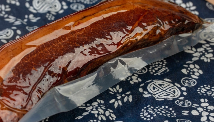 腊肉是通过腌制、晾晒等工序制作而成的一种腌肉。在晾晒前,一般需要用食盐、调味料等来进行腌制。这样不仅可以使腊肉口感更好,还可以使腊肉保存的时间更长。腌制腊肉的食盐在使用之前需要先炒一下,这是因为炒过的盐水分会减少,腌制时可以更好地吸收肉里地的水分,使腊肉口感更好,还可以使腊肉保存时间更长。炒盐时可以加碎花椒,颜色炒至发黄。将炒好的盐抹匀在肉上腌制5~7天,腌制时需每天翻动。腌制好后晾晒风干15~20天,就完成了。