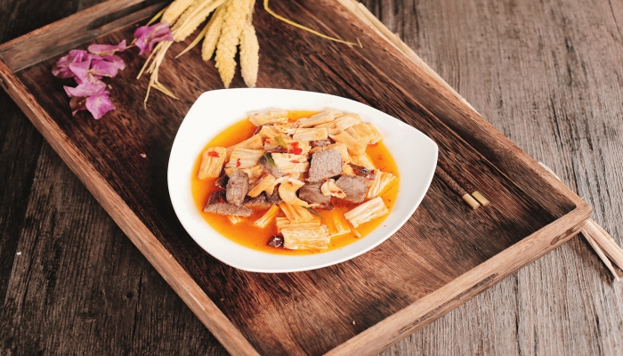 腐竹又称腐皮或豆腐皮,是很受欢迎的一种汉族传统食品,也是华人地区常见的食物原料,具有浓郁的豆香味,同时还有着其他豆制品所不具备的独特口感。腐竹色泽黄白,油光透亮,含有丰富的蛋白质及多种营养成分,用清水浸泡(夏凉冬温)3~5小时即可发开。食之清香爽口,别有风味。以下是腐竹的家常做法:
