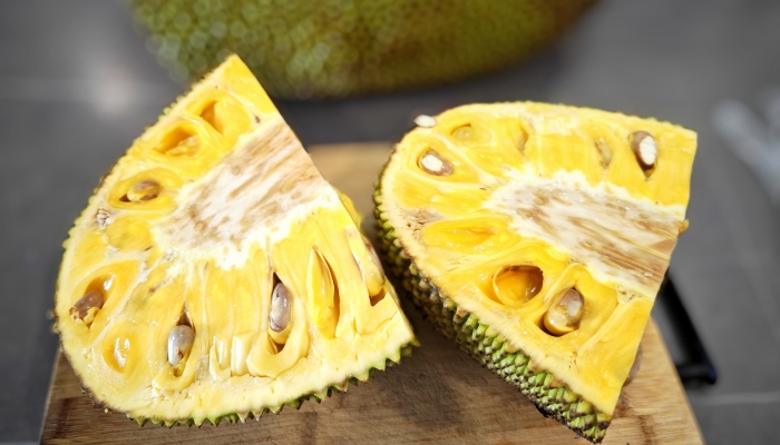 3、常温保存:将菠萝蜜的果肉从果壳中取出,用保鲜膜或保鲜袋单独包裹。在室温下放置,但要避免阳光直射和高温环境。每天检查菠萝蜜的果肉是否有变质或异味的情况。如果发现果肉软化或产生异味,应立即丢弃。常温保存的菠萝蜜最好在短时间内吃完,因为即使在室温下,菠萝蜜的果肉也会逐渐软化和失去一些风味。