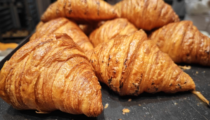 牛角面包属于法式面包。牛角面包,也称为可颂面包或羊角面包,是一种源自法国的食品。它的主要材料包括高筋面粉和低筋面粉,辅料有干酵母、糖、蛋、植物黄油、牛奶等。牛角面包的口味偏甜,有着香甜的味道。它的外形酷似牛角,因此得名。牛角面包的制作过程中,面团会经过多次折叠和发酵,形成层次分明的酥皮结构,外皮酥脆,内部柔软,口感丰富。这种面包通常作为早餐或下午茶的选择,也可以搭配咖啡或其他饮品享用。牛角面包在法国被称为“维也纳甜面包或甜点”(Viennoiserie),与甜甜圈或美式Donuts有些相似,拥有多种口味,如巧克力、果酱、奶油、葡萄干等。
