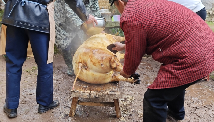9、完整呈现猪头猪尾:杀年猪时,必须确保猪头和猪尾被割下的地方让主人家能够看到,象征着新的一年的完整和顺利。